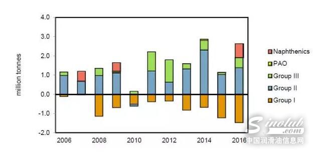 全球基础油供应总体来说一直在保持增长, 让我们先看下前十年的情况,(2006-2016)这10年中,全球基础油年产能增加了1730万吨,同时关停了730万吨,净增加了1000万吨的产能。 差不多相当于2个中国市场的需求。